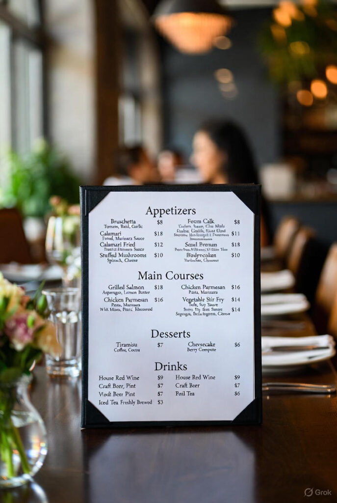 - Digital Menus: Display interactive menus on tablets, screens, or online for a modern dining experience.