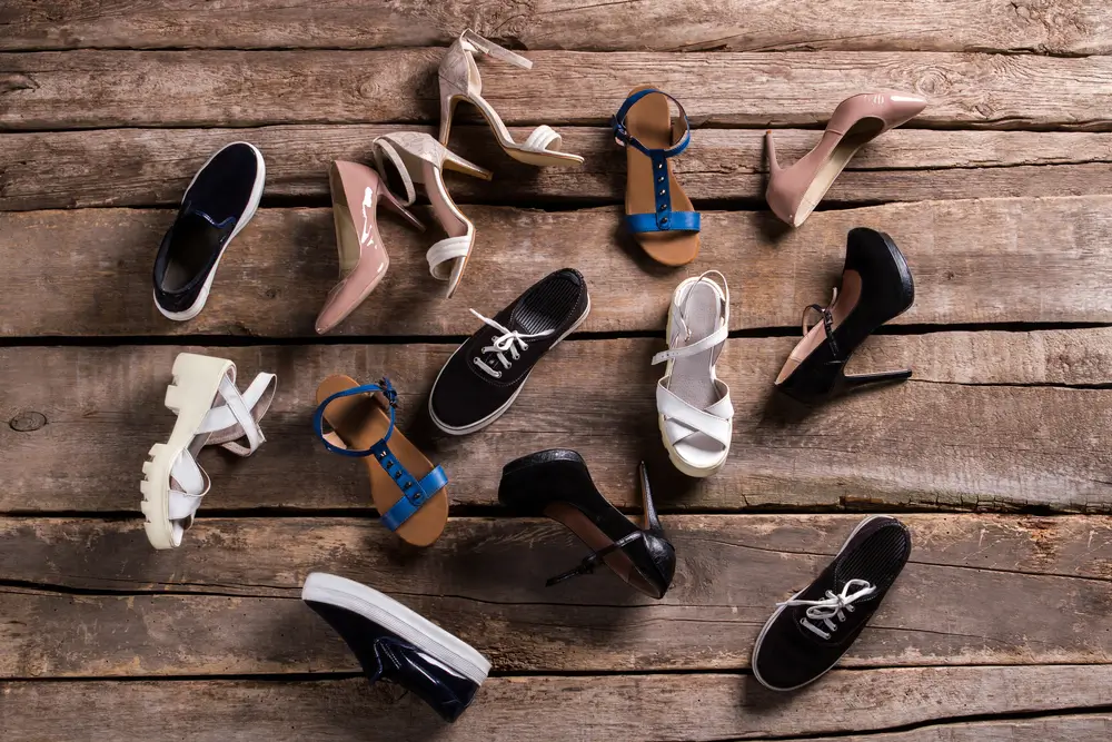 On one side, there are sporty sneakers in vibrant red and classic white, ideal for those who prefer comfort and active lifestyles. Their cushioned soles and breathable materials ensure day-long ease, perfect for workouts, travel, or everyday wear. Alongside them, sturdy brown lace-up boots offer a rugged outdoor vibe, giving both style and practicality for adventure lovers