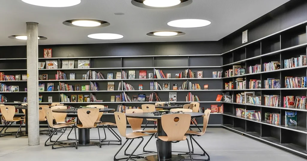 - Spacious Reading Areas: Comfortable seating arrangements, including individual desks, group tables, and cozy corners for relaxed reading.