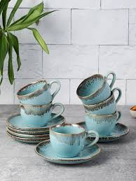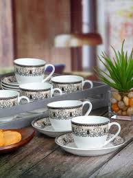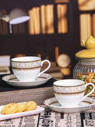 Crafted from premium-quality ceramic/porcelain, the cups and saucers have a smooth, glossy finish that resists stains and retains their shine over time. The subtle patterns and delicate detailing reflect the signature aesthetic of the Mahi collection, making the set suitable for both everyday use and formal settings.