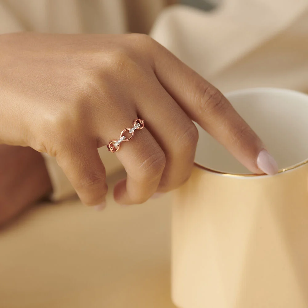 Beyond its beauty, this ring carries a deeper meaning. The chain-link motif represents connection, strength, and unbreakable bonds, making it an ideal choice for expressing love, friendship, or commitment. Whether you choose it as a gift for someone special or as a personal treasure, this rose gold chain-link ring will remain a timeless symbol of elegance, grace, and lasting relationships.
